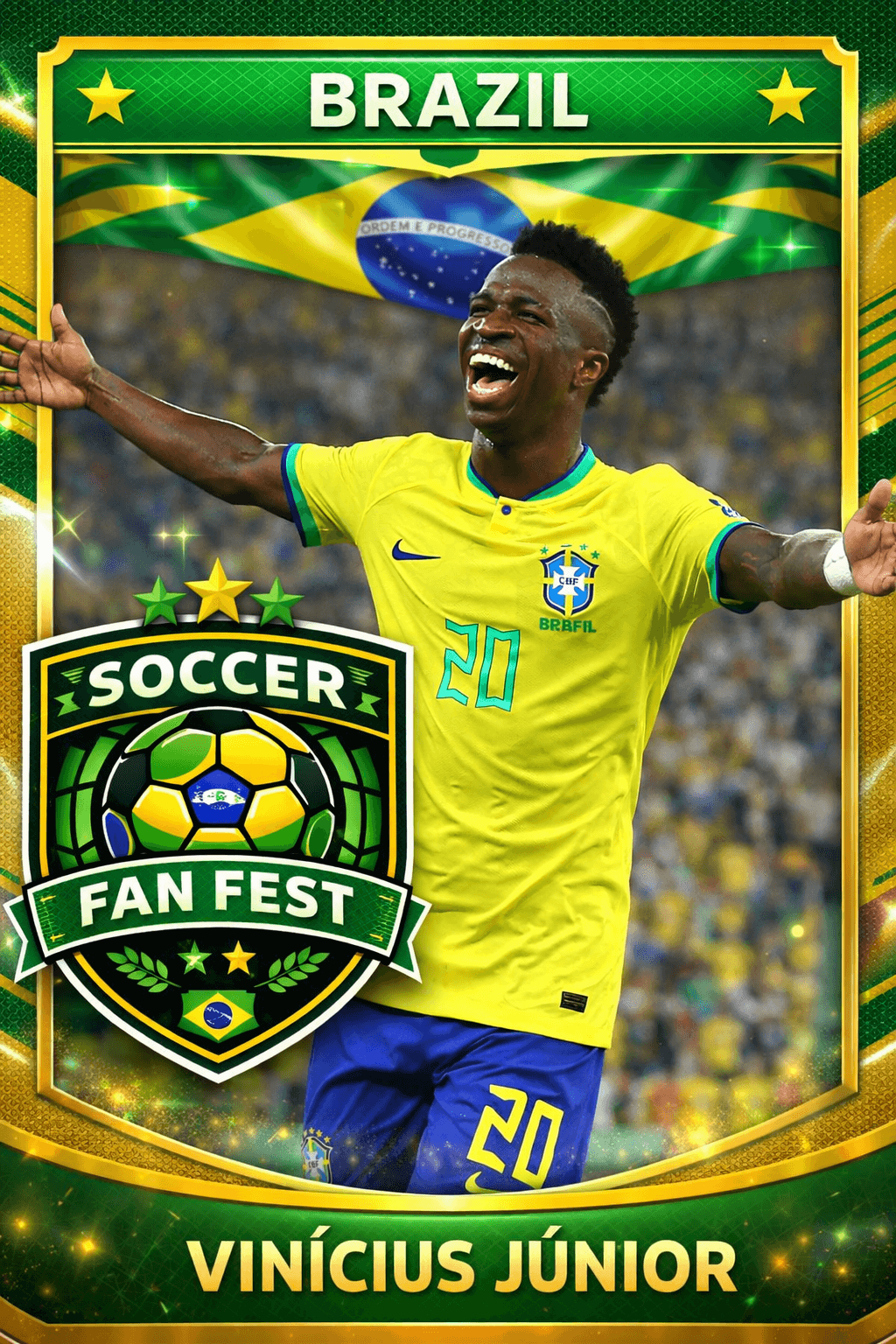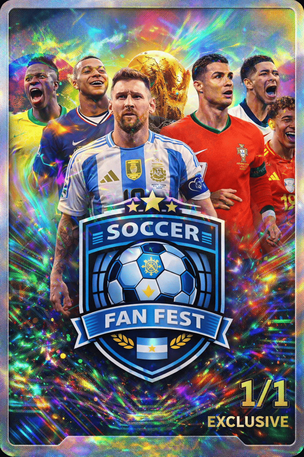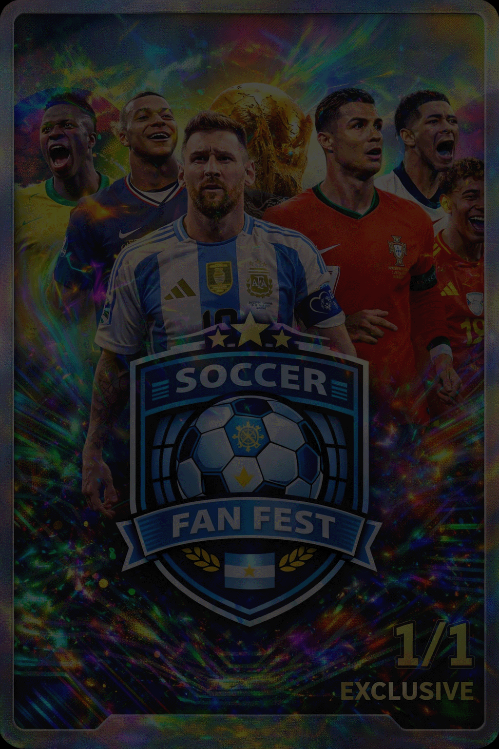 Soccer Fan Fest is a flexible platform built to connect live football culture with lasting artifacts. The name, cards, and archive are designed to support real-world fan fest activations, digital releases, and social-first moments—whether cards are shared at live events, revealed online, or released periodically leading into major tournaments. Some editions are created to circulate widely, others to be preserved, allowing fans, cities, and partners to turn moments into something collectible.