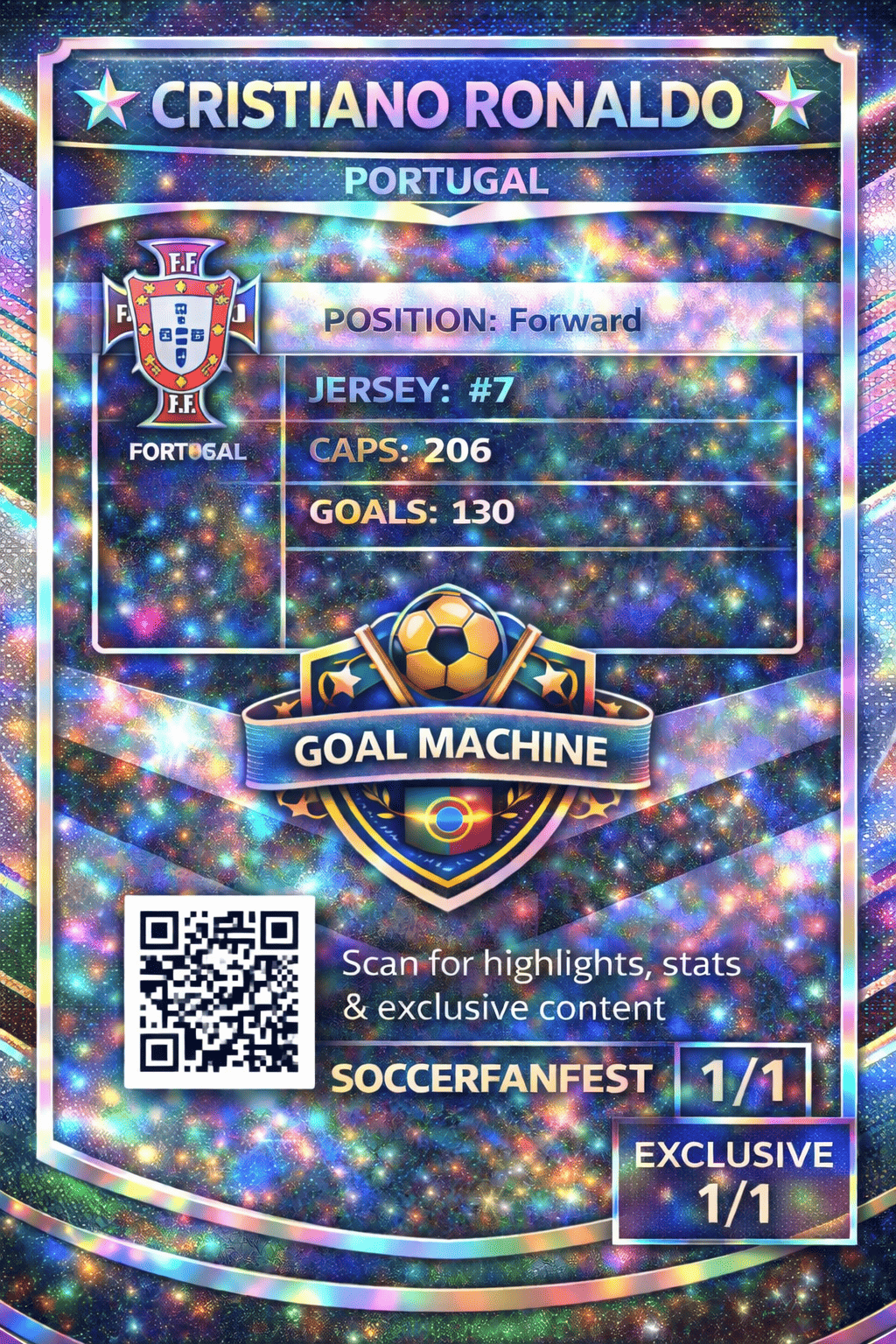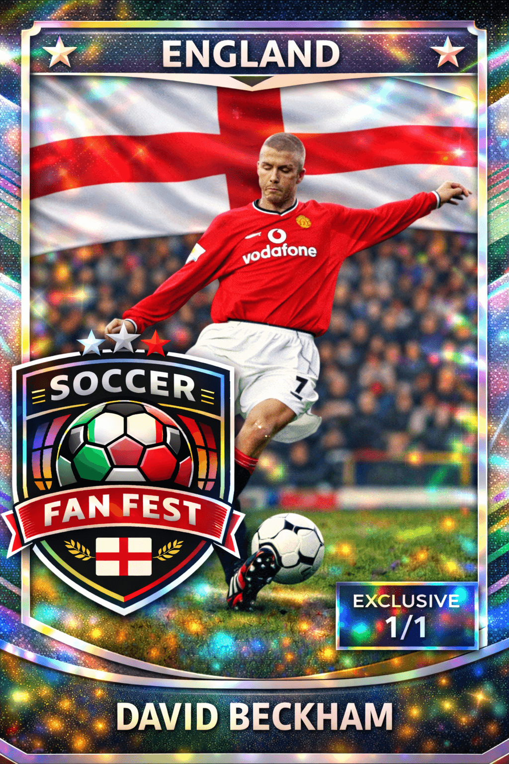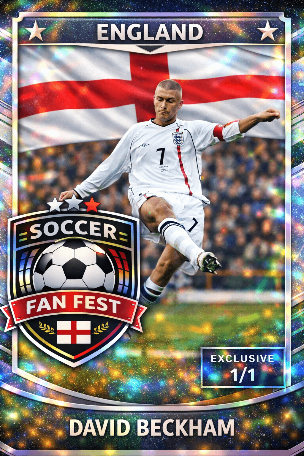 Soccer Fan Fest is a flexible platform built to connect live football culture with lasting artifacts. The name, cards, and archive are designed to support real-world fan fest activations, digital releases, and social-first moments—whether cards are shared at live events, revealed online, or released periodically leading into major tournaments. Some editions are created to circulate widely, others to be preserved, allowing fans, cities, and partners to turn moments into something collectible.